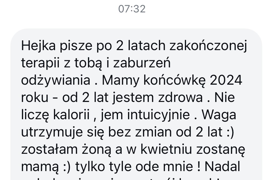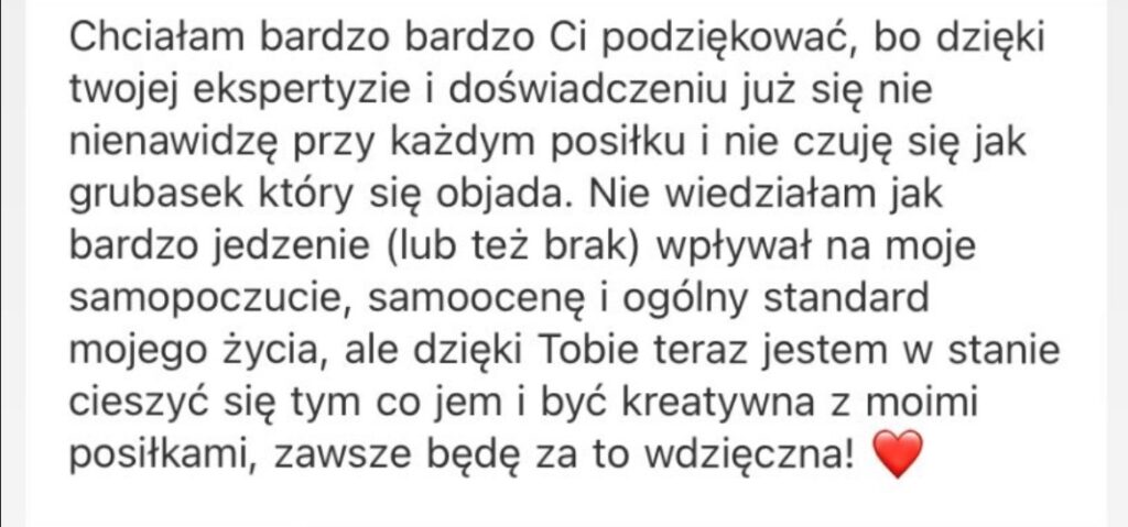 W porządku, też tak miałam. Nie wiedziałam jak to jest być zmęczoną, ignorowałam głód latami, a później opychałam się do bólu brzucha. Tego da się nauczyć. Nie musisz teraz “rozumieć” swojego ciała – nauczymy się je rozumieć wspólnie. Z workbookami, praktyką, wsparciem. Nie musisz na starcie umieć „jeść intuicyjnie”. Masz się pojawić i być gotowa się uczyć, spróbować inaczej, niż do tej pory. Całą resztę zrobimy razem.