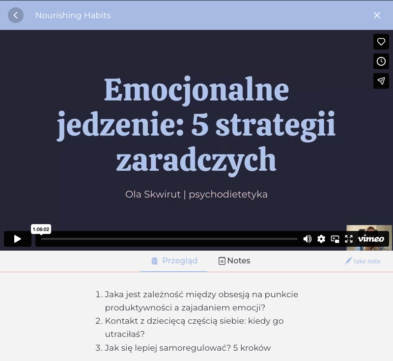 6-miesięczny dostęp do biblioteki nagrań & kart pracy - zaprojektowanego procesu, który uczy Cię 4 kluczowych umiejętności: zdrowe rutyny, jedzenie bez obsesji, przeżywanie emocji, traktowanie siebie dobrze.